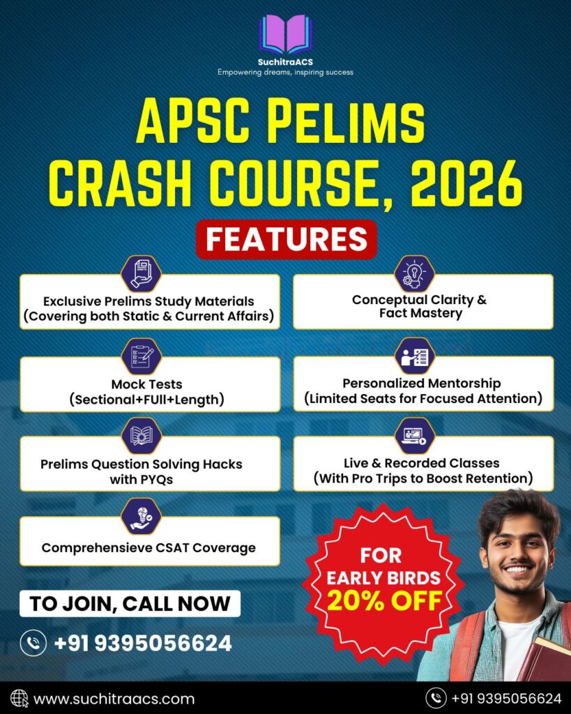 Are you preparing for the APSC Prelims 2026? Tackling this exam is no small feat, but with focused study and expert guidance, you can maximize your chances of success! That’s why we’ve launched the APSC Prelims Crash Course 2026 — a power-packed designed to equip you with everything you need to excel. From live and recorded classes to comprehensive study materials, personal mentorship, and practice exams, this course is your all-in-one solution to mastering the Prelims.