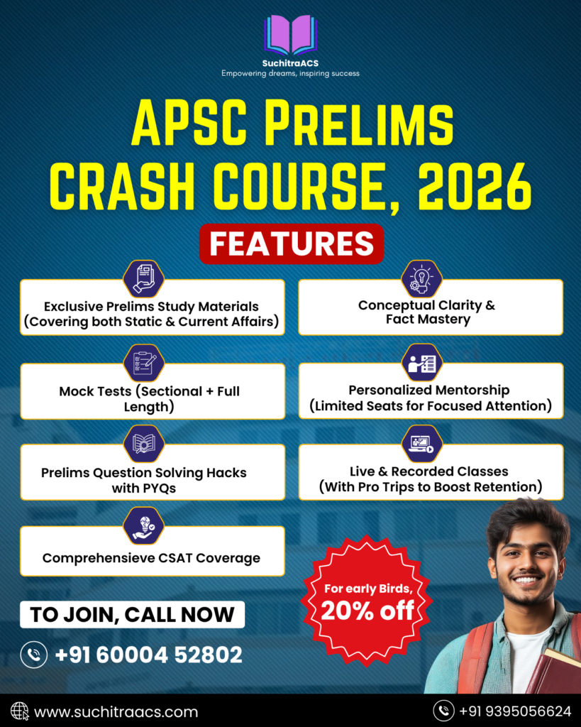 Are you preparing for the APSC Prelims 2026? Tackling this exam is no small feat, but with focused study and expert guidance, you can maximize your chances of success! That’s why we’ve launched the APSC Prelims Crash Course 2026 — a power-packed designed to equip you with everything you need to excel. From live and recorded classes to comprehensive study materials, personal mentorship, and practice exams, this course is your all-in-one solution to mastering the Prelims.